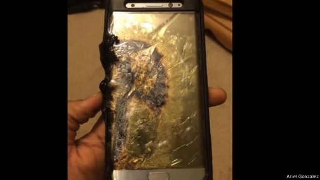 أفادت أنباء من كوريا الجنوبية والولايات المتحدة بأن غلاكسي نوت 7 "يحترق" خلال الشحن أو بعده مباشرة، وذلك بعد أن ظهرت صور وفيديوهات تم تداولها على الانترنت هواتف من نوع غلاكسي نوت 7 محترقة.