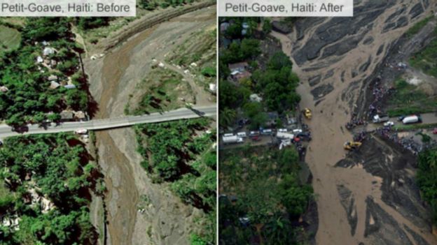 وقالت تقارير إن حوالي 50 شخصا لقوا حتفهم في بلدة روش-أ- باتو الجنوبية وحدها بسبب الإعصار، الذي يُعد أقوى إعصار يضرب منطقة الكاريبي خلال عقد من الزمن.