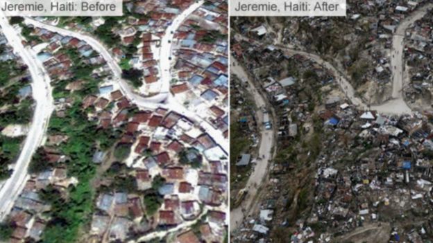 ووصف أحد سكان مدينة "لي كاييه" ويدعى جان جوزيف المشهد في المدينة، وهي أحد أكثر المناطق تضررا من الإعصار، بأنه "دمار تام".