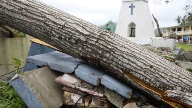 ومر الإعصار مباشرة عبر شبه جزيرة "تيبورون" وتسبب في فيضان مياه البحر وتدمير المنازل تماما إذ صاحبته رياح عاتية، بلغت سرعتها 230 كيلومترا في الساعة، وسقوط أمطار غزيرة يومي الاثنين والثلاثاء.